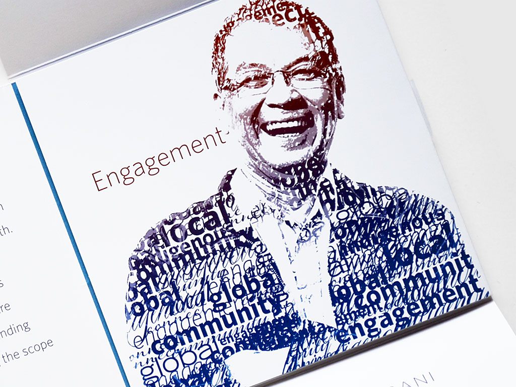 Kelly developed the creative direction and prepared this suite of typographic illustrations for this UBC fund raiser. Each literally embodies the key aspects of each topic — Research, Innovation, Learning, and Engagement. And the people profiled are real UBC alumni with real success stories.