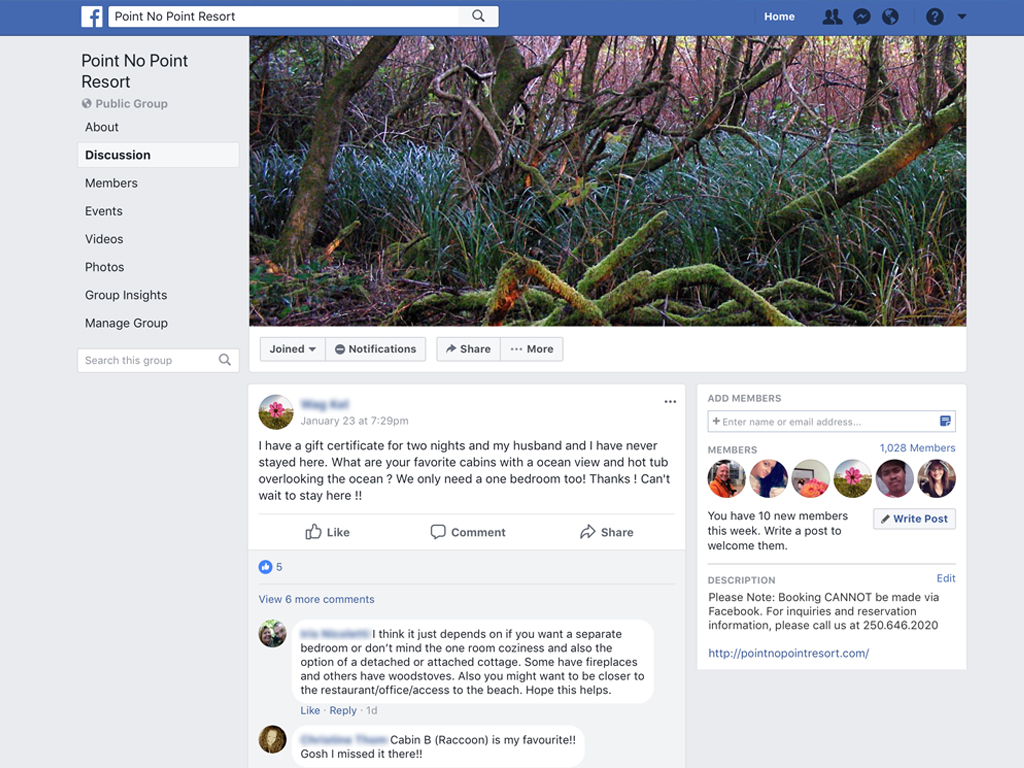 The group members are die-hard, crazy-passionate fans of Point No Point resort. They jump in to answer each other’s questions and give suggestions. They describe their visits and their favorite cabins. They flat-out love the place.